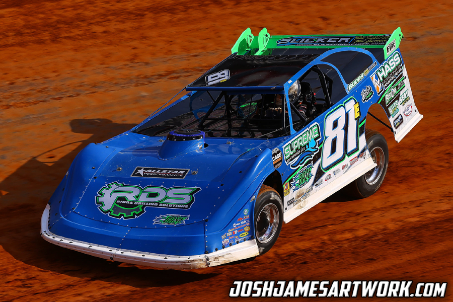 Tanner English hard on the gas at Bristol (TN) Motor Speedway during the 2022 season - Josh James Artwork