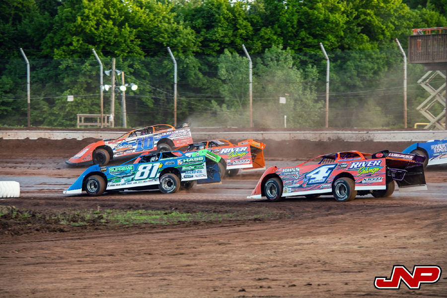 Tanner English races hard at Sharon (OH) Speedway during the 2022 season - Jacy Norgaard Photo